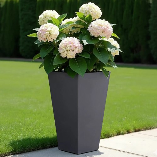 In stockFree UK Delivery*Original price was: £83.06.£70.99Current price is: £70.99.Tall Tapered Black Light Concrete Garden Planter H50.5 L24.5 W24.5 cm, 30 ltrs Cap.