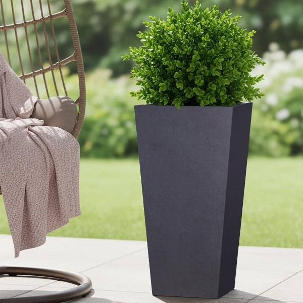 In stockFree UK Delivery*Original price was: £51.47.£39.59Current price is: £39.59.Tall Tapered Black Light Concrete Garden Planter H50.5 L24.5 W24.5 cm, 30 ltrs Cap.