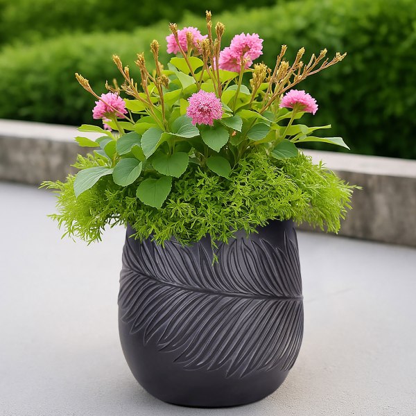 Leaf Embossed Black Garden Round Planter, Outdoor Plant Pot by Idealist Lite D21.5 H22 cm, 5L Out of stockOriginal price was: £37.43.£22.39Current price is: £22.39.