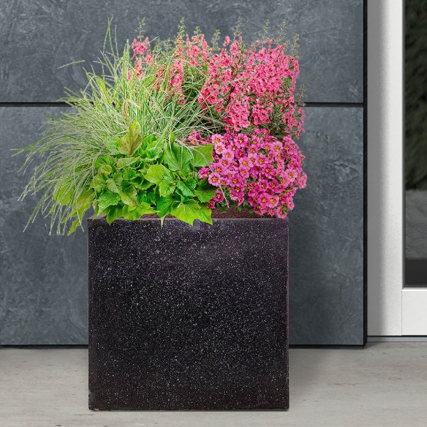 In stockFree UK Delivery*Original price was: £47.96.£36.89Current price is: £36.89.Square Box Black Terazzo Light Concrete Garden Planter H50 L50 W50 cm, 128 ltrs Cap.