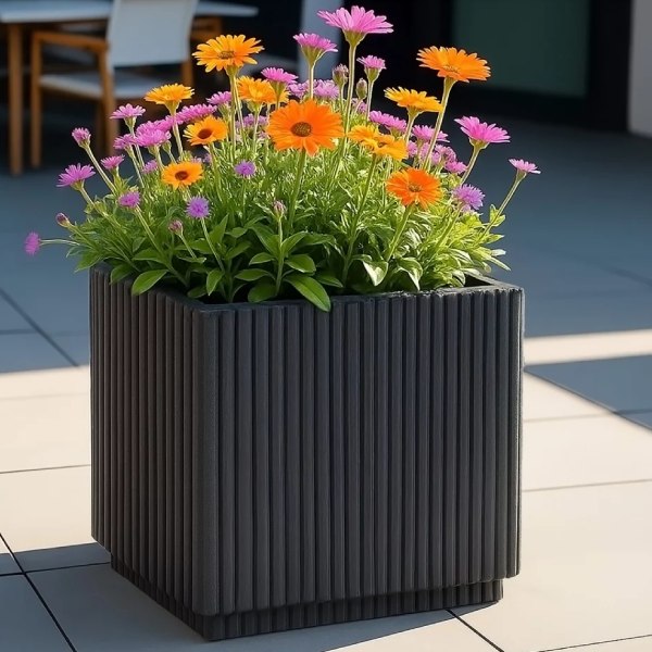 Out of stockOriginal price was: £69.02.£58.99Current price is: £58.99.Ribbed Black Square Planter, Outdoor Plant Pot H44 L44 W44 cm, 74 ltrs Cap.