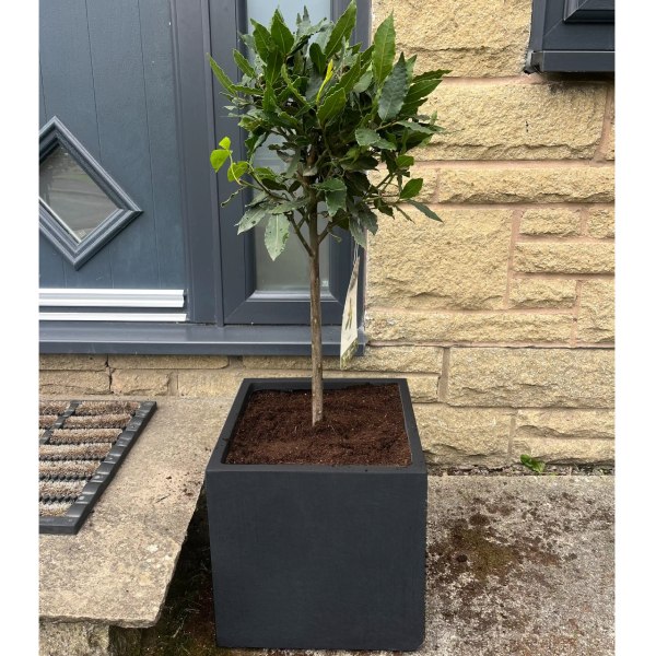 Victorian Box Black Square Light Stone Outdoor Planter W55 H55 L55 cm, 166.4 ltrs Cap.