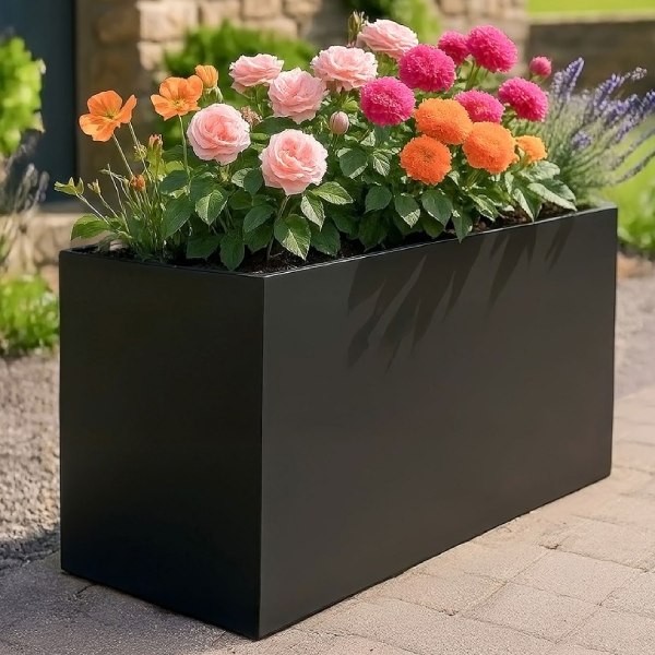 In stockFree UK Delivery*Original price was: £141.56.£108.89Current price is: £108.89.Light Concrete Black Trough Garden Planter H40 L50 W20 cm, 40 ltrs Cap.