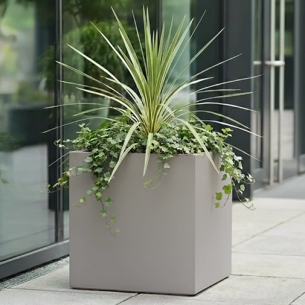 Square Box Grey Light Concrete Garden Planter H40 L40 W40 cm, 65 ltrs Cap.