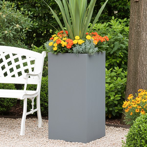 Out of stockOriginal price was: £112.31.£95.99Current price is: £95.99.Tall Square Grey Light Concrete Garden Planter H80 L40 W40 cm, 132 ltrs Cap.