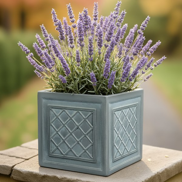 Faux Lead Lattice Box Square Grey Light Stone Garden Planter W22 H22 L22 cm, 13 ltrs Cap.