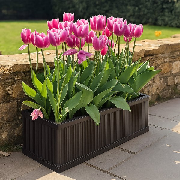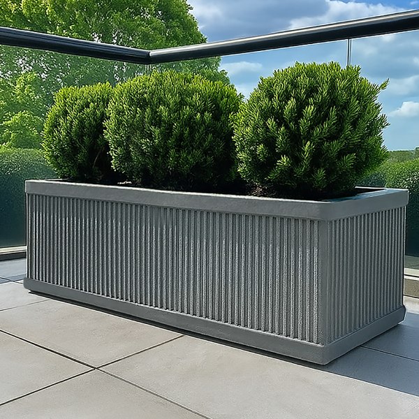 In stockFree UK Delivery*Original price was: £127.52.£98.09Current price is: £98.09.Vertical Ribbed Vintage Style Faux Lead Window Box Garden Planter H17 L60 W17 cm, 17 ltrs Cap.