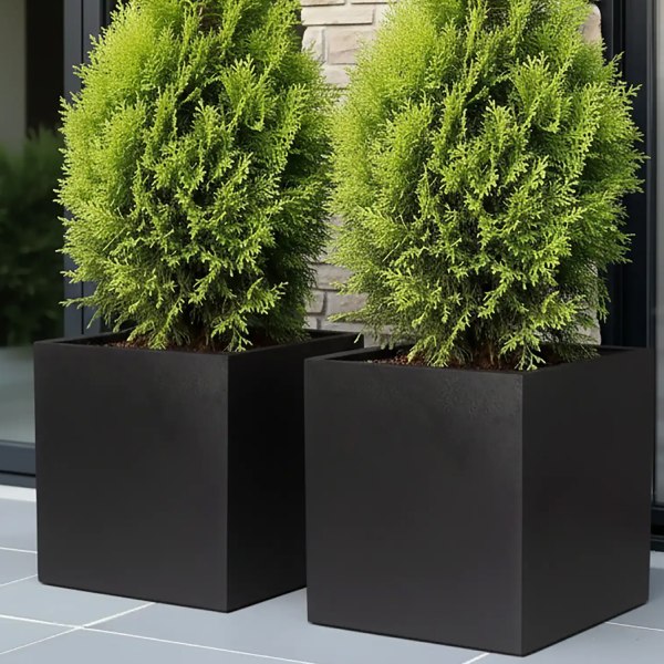 Set of Two Lite Square Box Black Light Concrete Planters L30 W30 H30 cm, 27 liters