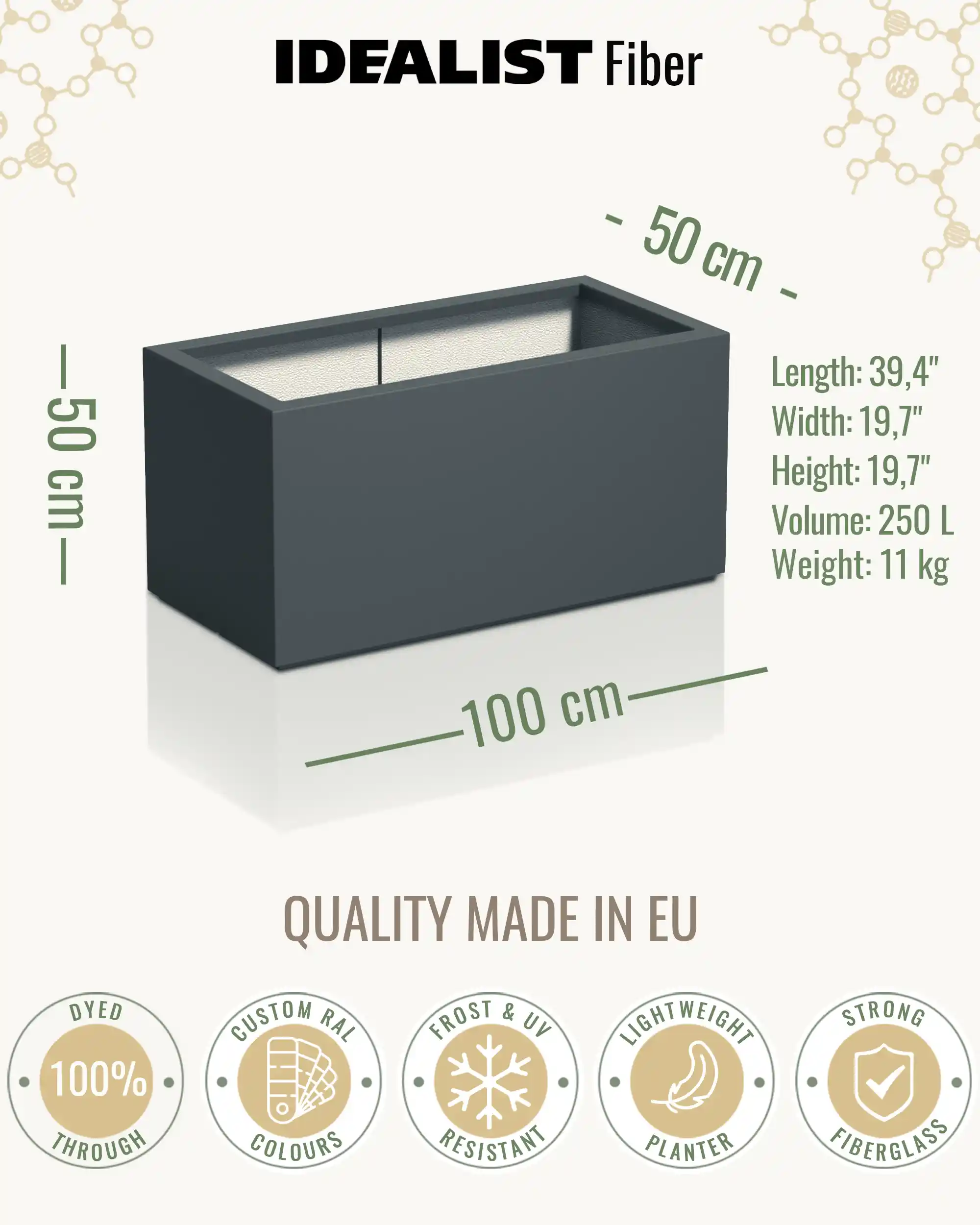 The use of high-quality materials and fibreglass makes the planters UV and Frost resistant, providing durability. Please be aware the units will weather over time naturally.