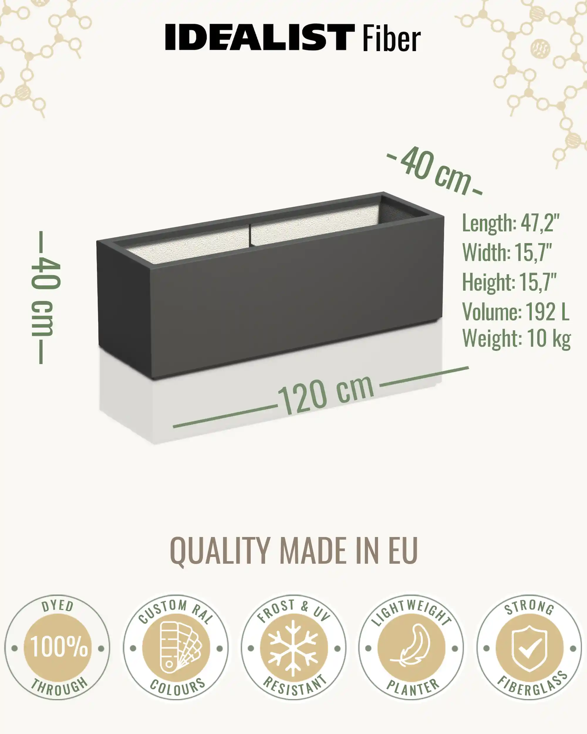 The use of high-quality materials and fibreglass makes the planters UV and Frost resistant, providing durability. Please be aware the units will weather over time naturally.