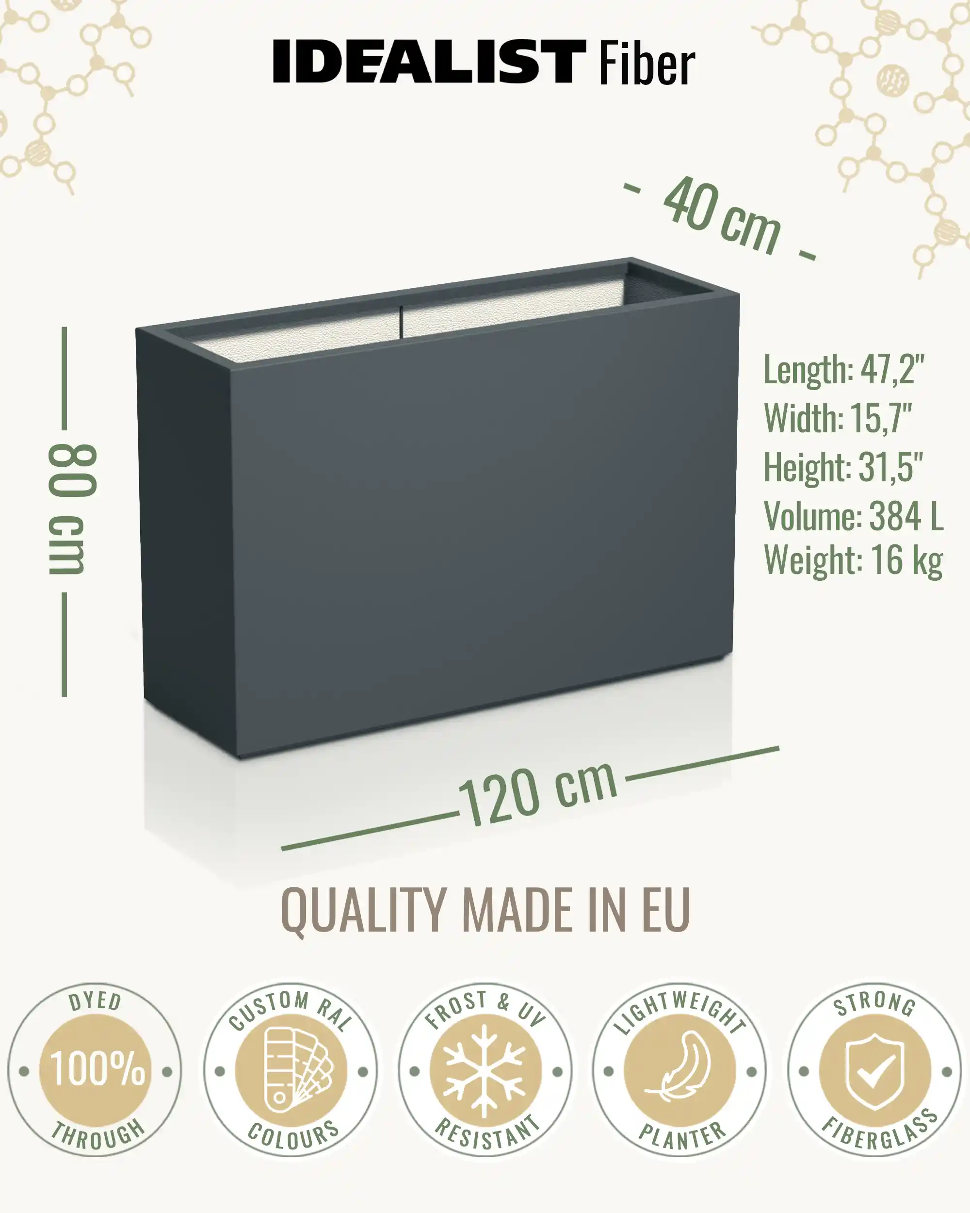 AXIS 120cm Large Trough, Grey Tall Rectangular Fibreglass Planter for Outdoor Use H80 L120 W40 cm, 384 ltrs Cap.