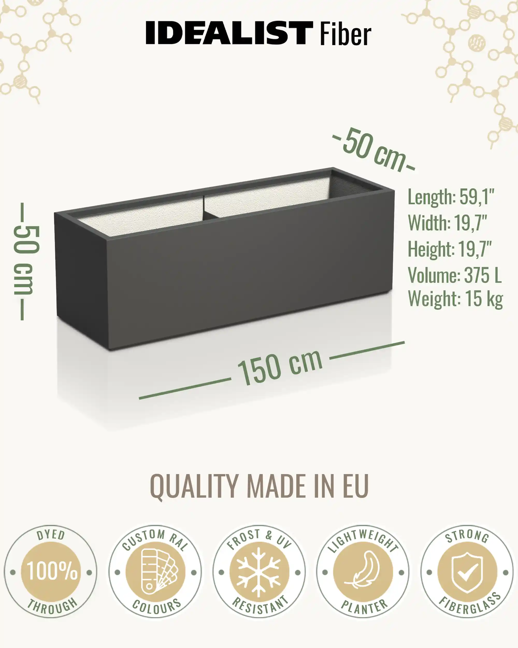 The use of high-quality materials and fibreglass makes the planters UV and Frost resistant, providing durability. Please be aware the units will weather over time naturally.