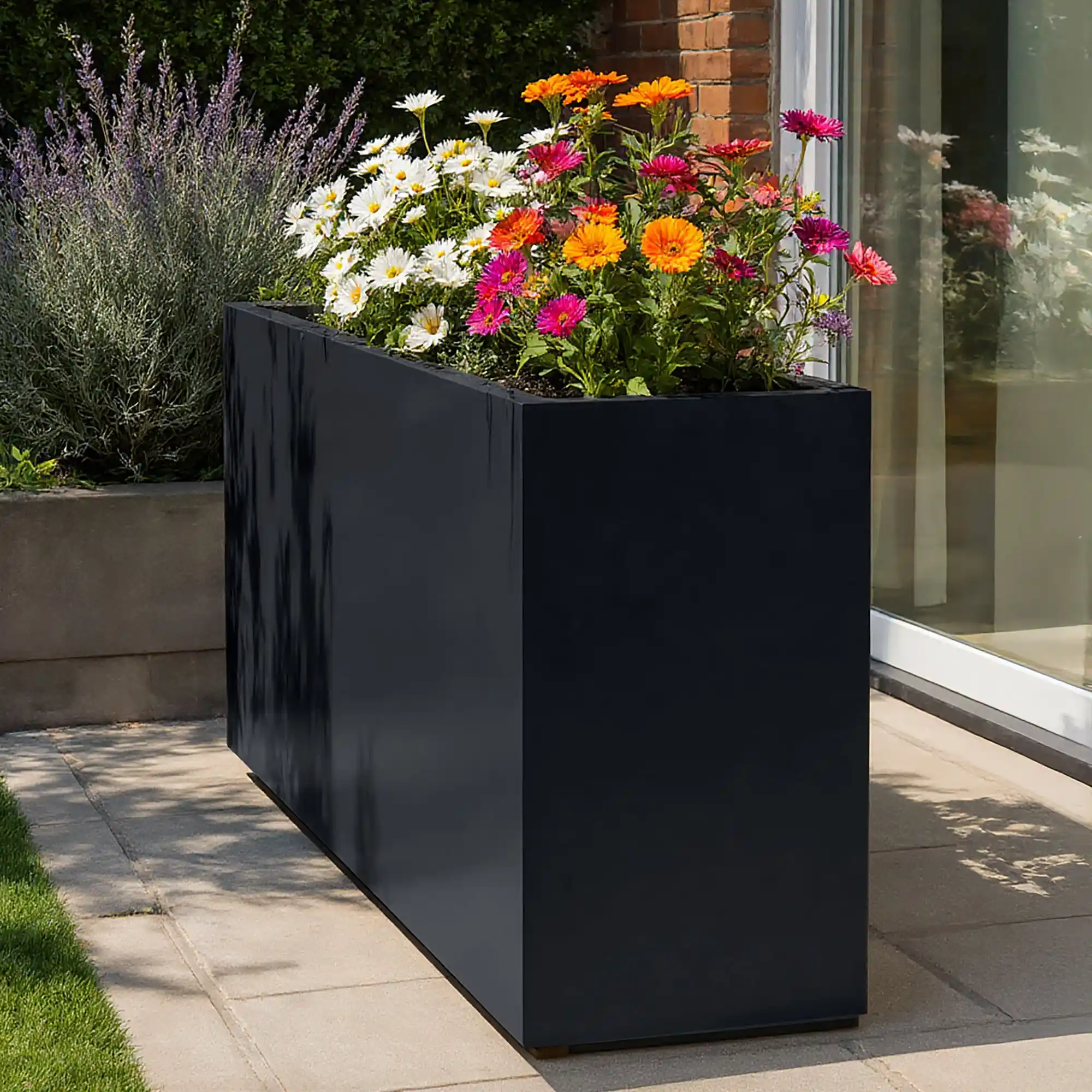 AXIS 150cm Extra Large Trough, Black Grey Tall Rectangular Fibreglass Planter for Outdoor Use H80 L150 W40 cm, 480 ltrs Cap.