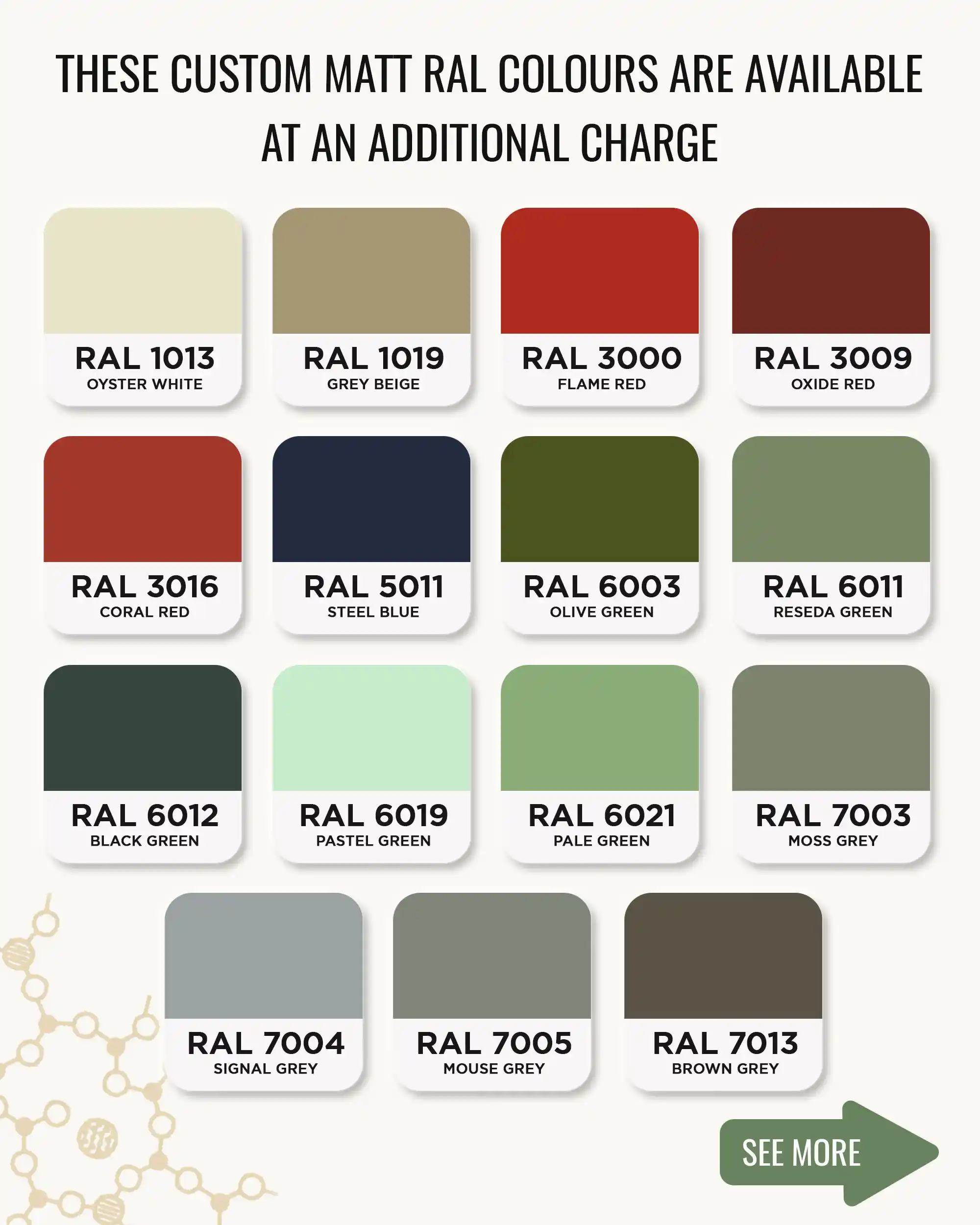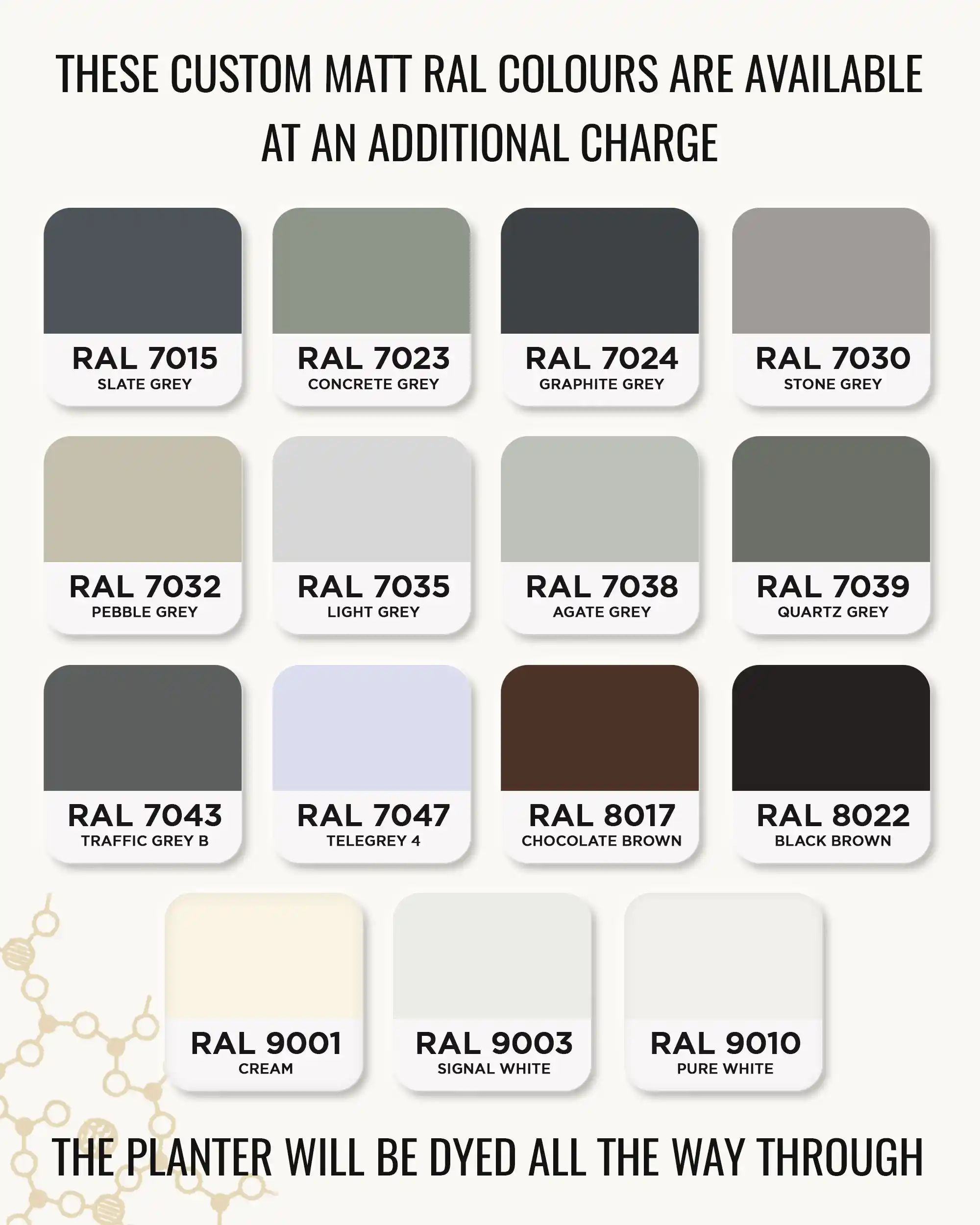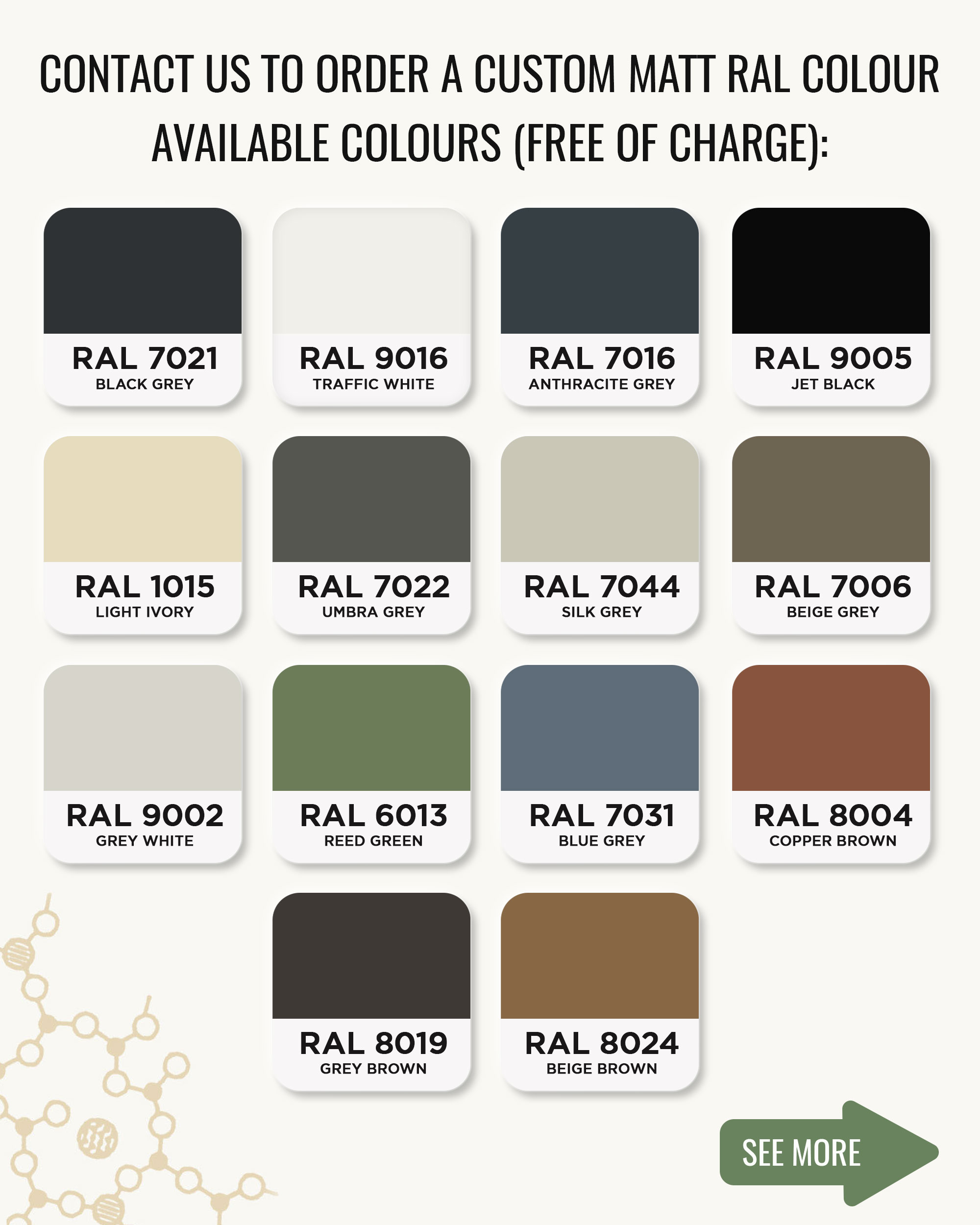 • Сhoice of 14 custom RAL colours free of charge