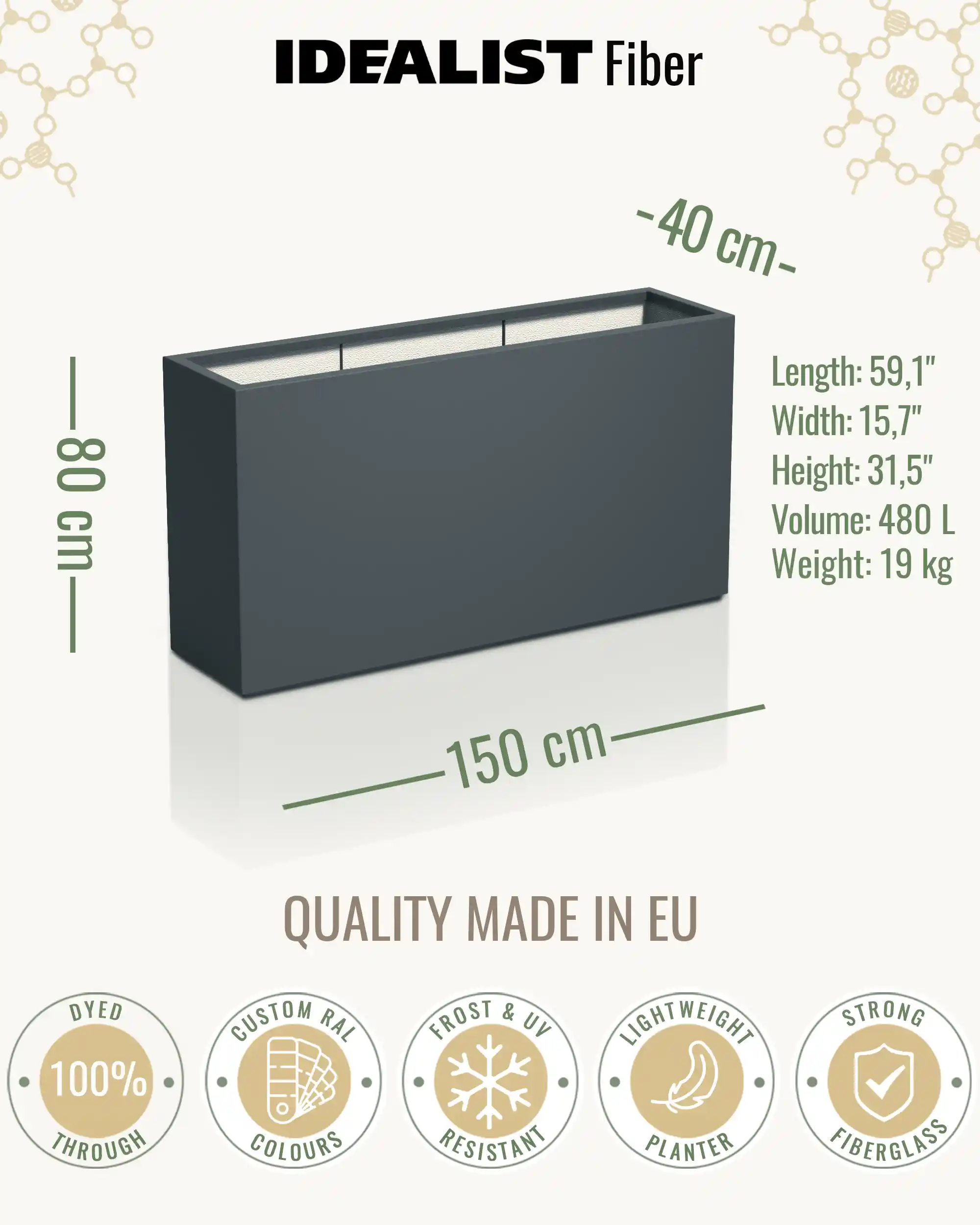 The use of high-quality materials and fibreglass makes the planters UV and Frost resistant, providing durability. Please be aware the units will weather over time naturally.
