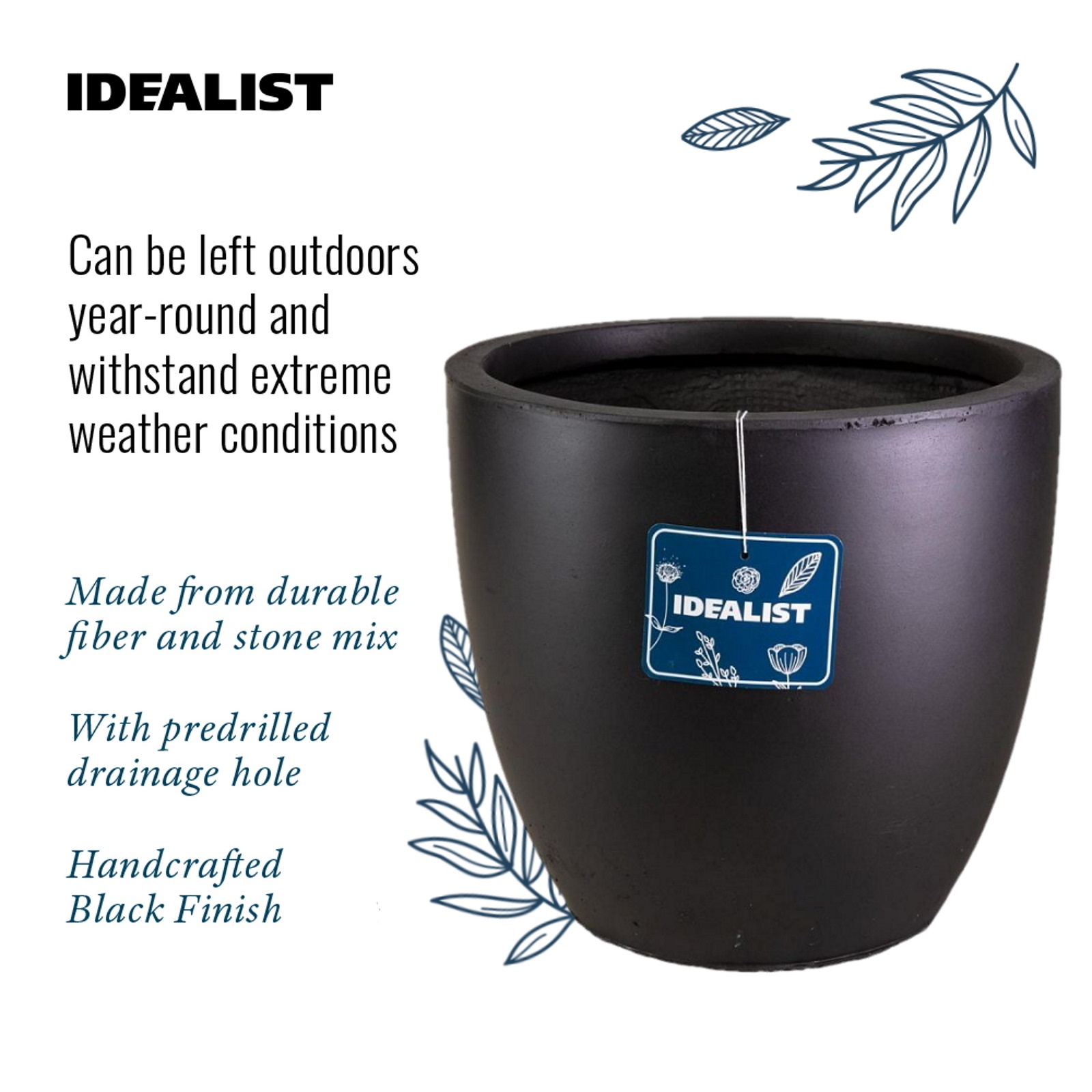 Black Light Concrete Egg Garden Planter D50 H50 cm, 98 ltrs Cap.