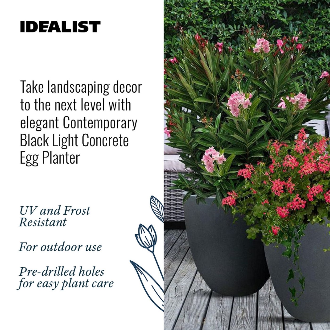 Black Light Concrete Egg Garden Planter D50 H50 cm, 98 ltrs Cap.