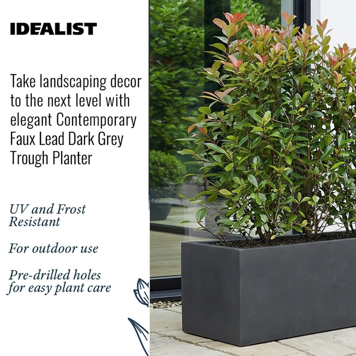 The use of high-quality materials and fibreglass makes the planters UV and Frost resistant, providing durability. Please be aware the units will weather over time naturally.