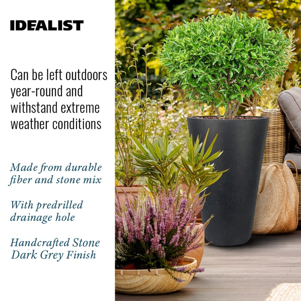 Black Light Concrete Egg Garden Planter D50 H50 cm, 98 ltrs Cap.