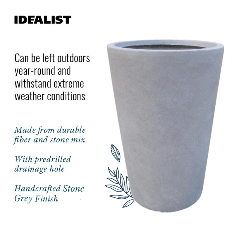 The ingredients to the planters include: Composite stone powder, chopped Fibreglass and a fibreglass netting used from recycled materials.