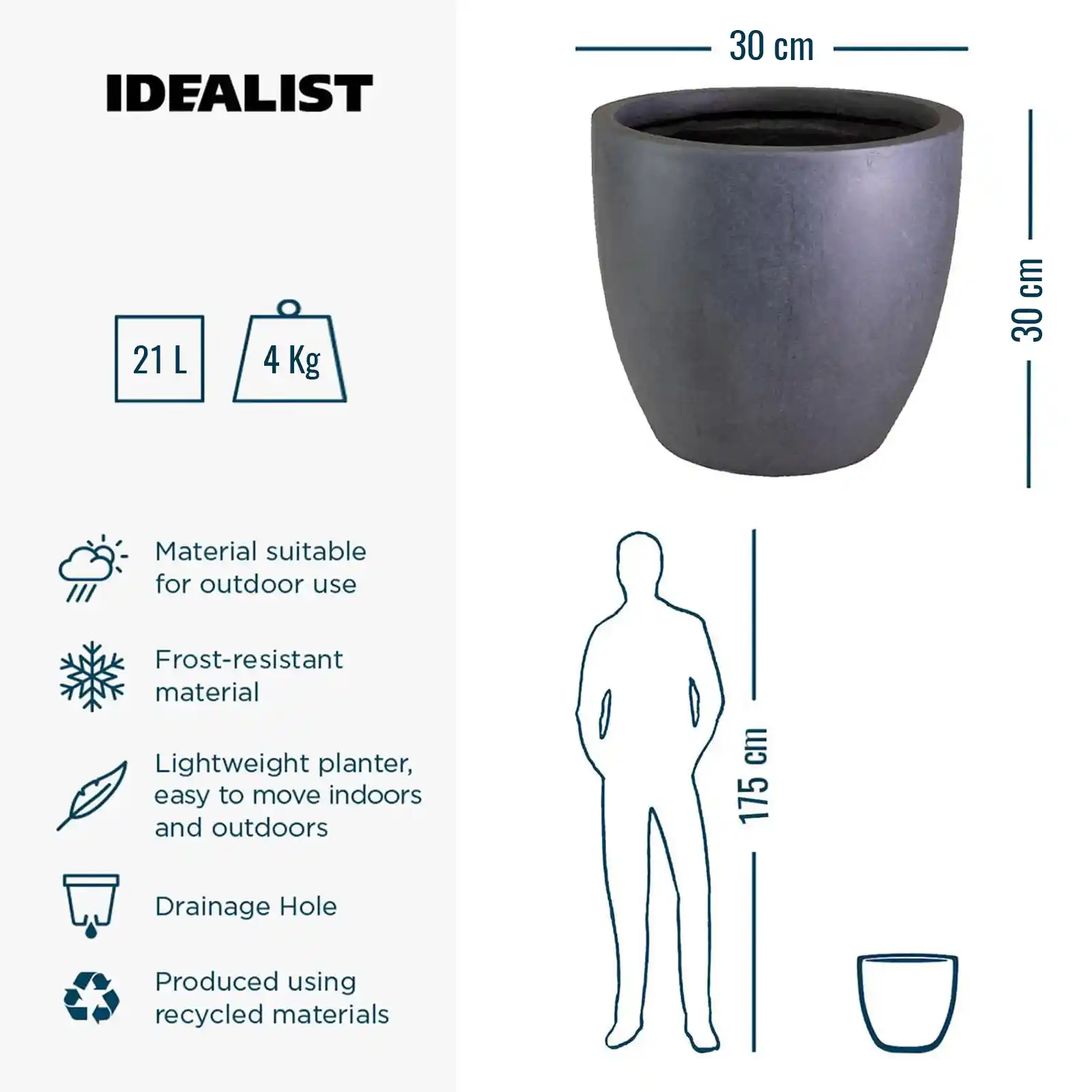Black Light Concrete Egg Garden Planter D50 H50 cm, 98 ltrs Cap.