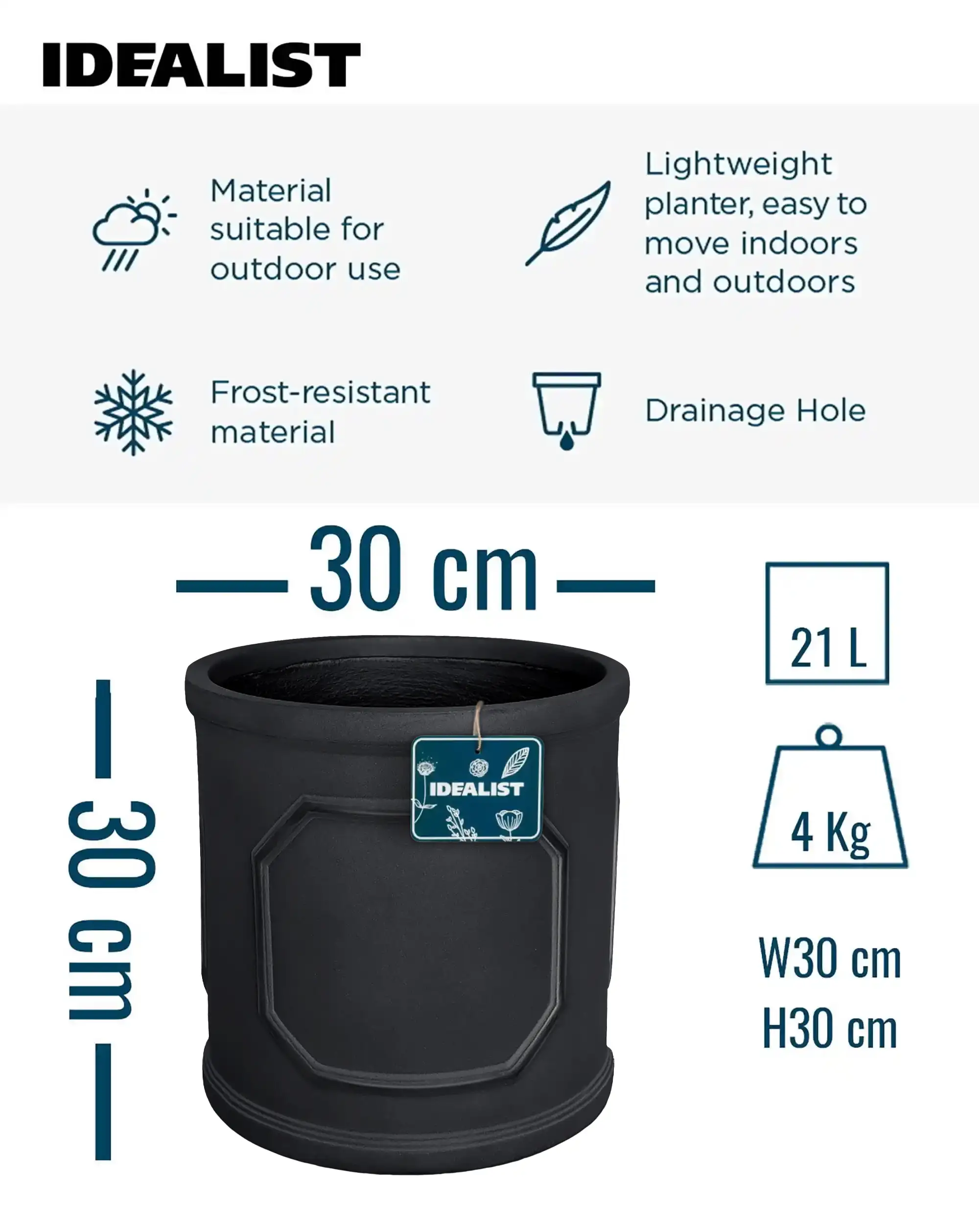 | Drainage holes | Yes |