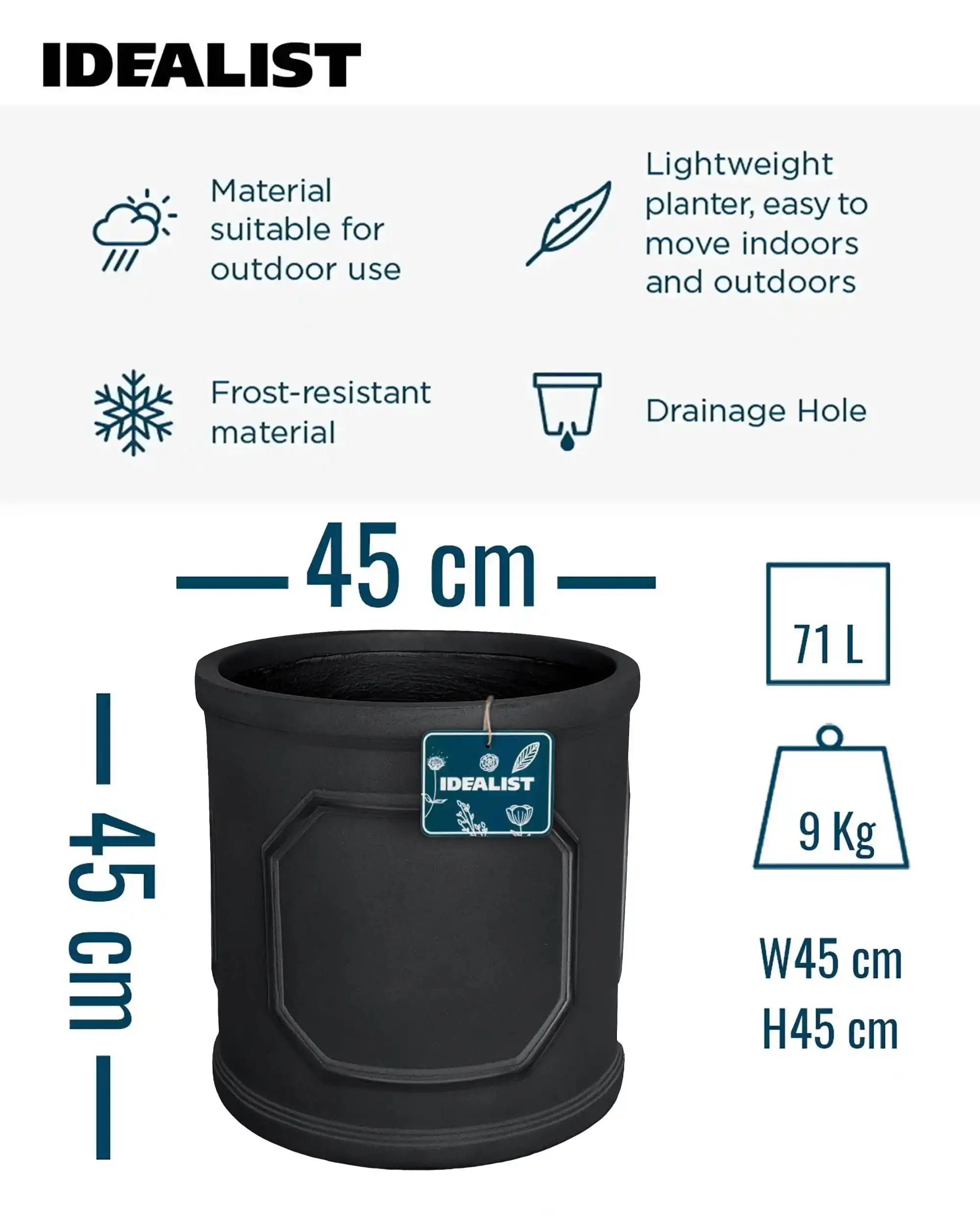 Black Light Concrete Egg Garden Planter D50 H50 cm, 98 ltrs Cap.