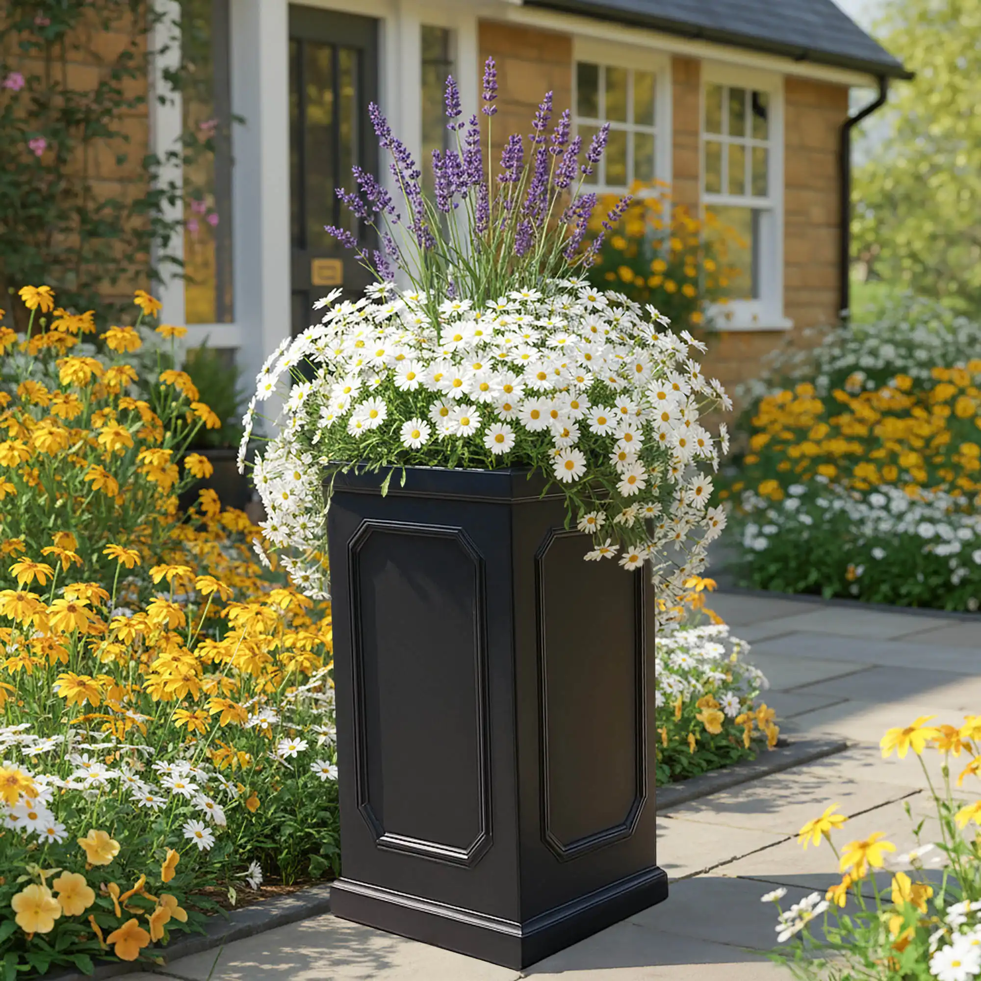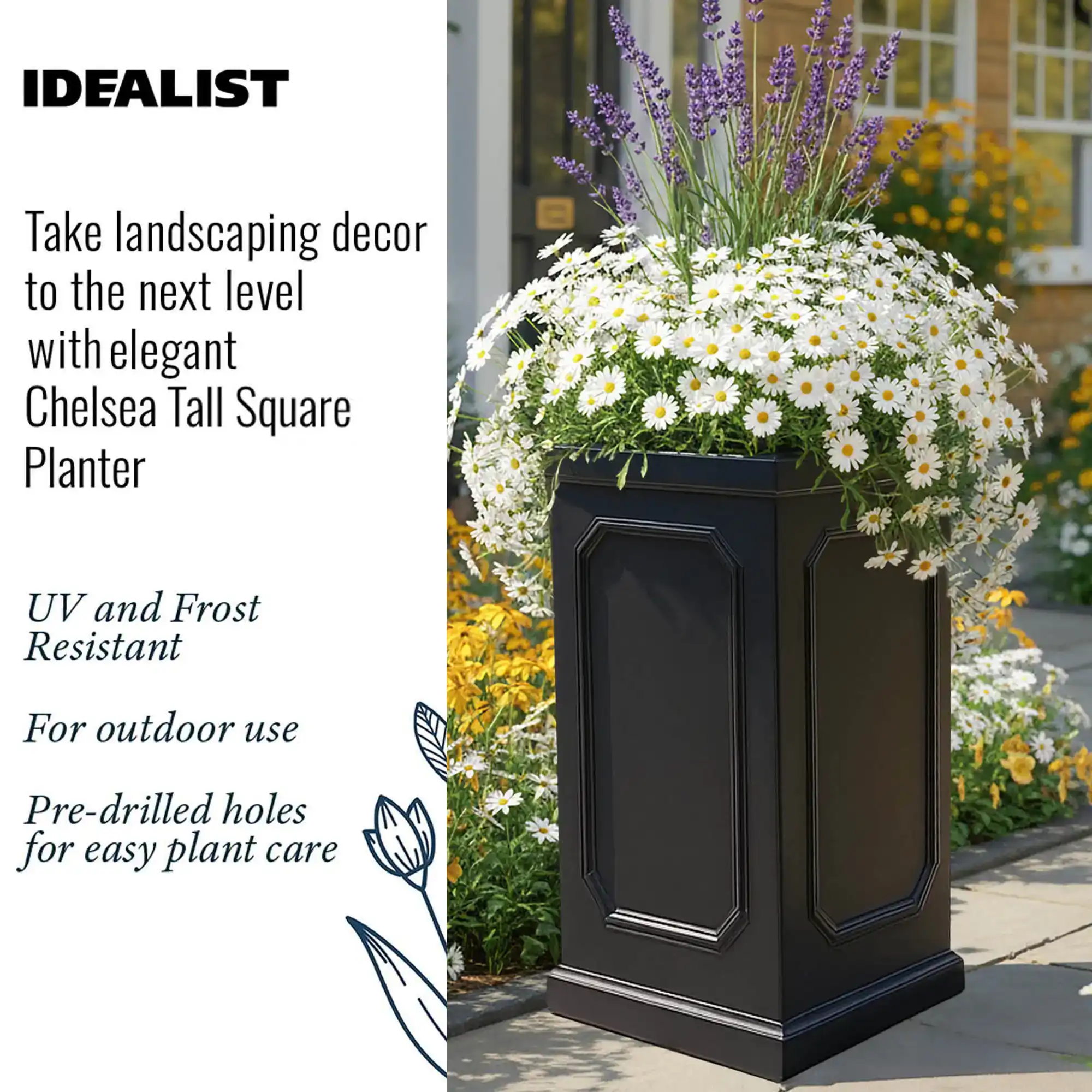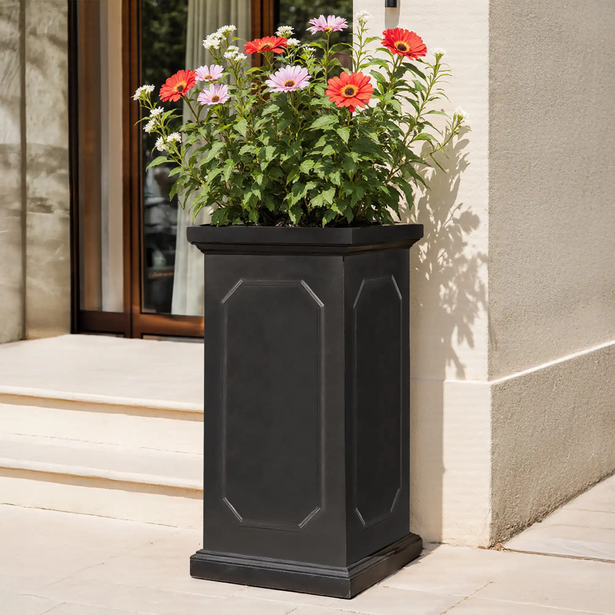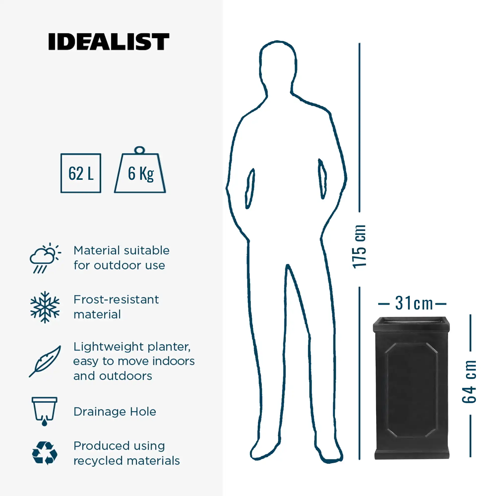 Faux Lead Chelsea Tall Square Dark Grey Light Stone Garden Planter H64 L31 W31 cm, 62 ltrs Cap.