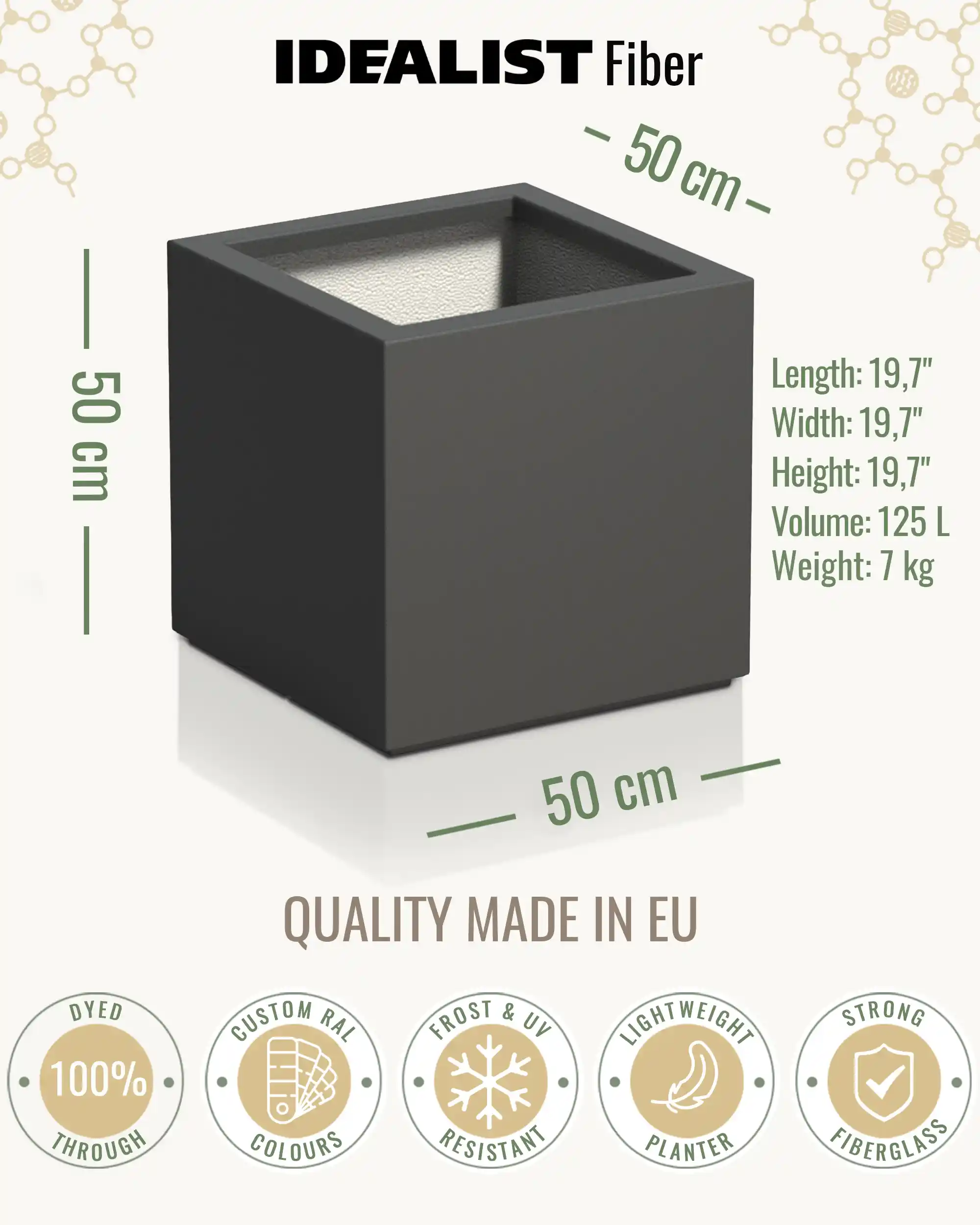 The use of high-quality materials and fibreglass makes the planters UV and Frost resistant, providing durability. Please be aware the units will weather over time naturally.