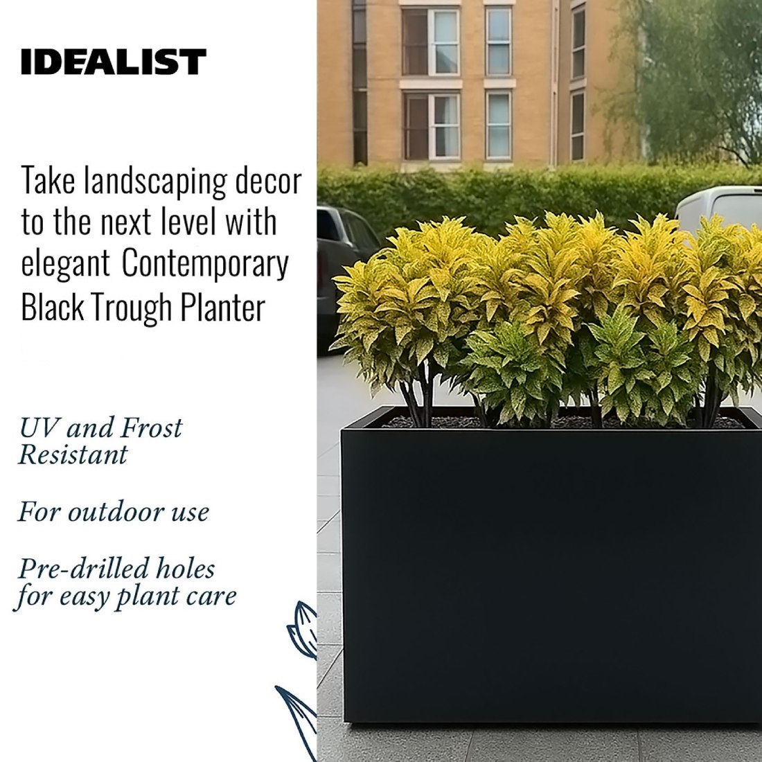 The use of high-quality materials and fibreglass makes the planters UV and Frost resistant, providing durability. Please be aware the units will weather over time naturally.