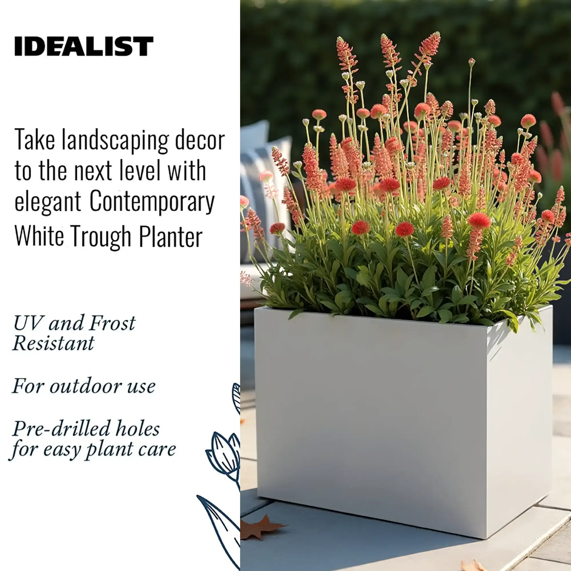 The use of high-quality materials and fibreglass makes the planters UV and Frost resistant, providing durability. Please be aware the units will weather over time naturally.