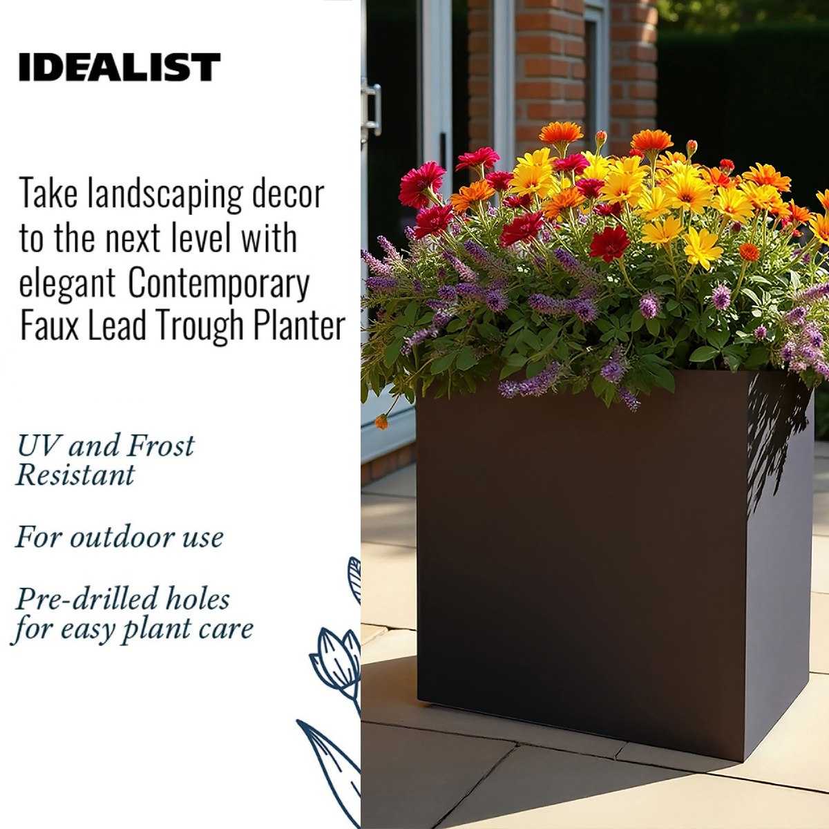 Square Box Faux Lead Light Concrete Garden Planter H50 L50 W50 cm, 126 ltrs Cap.