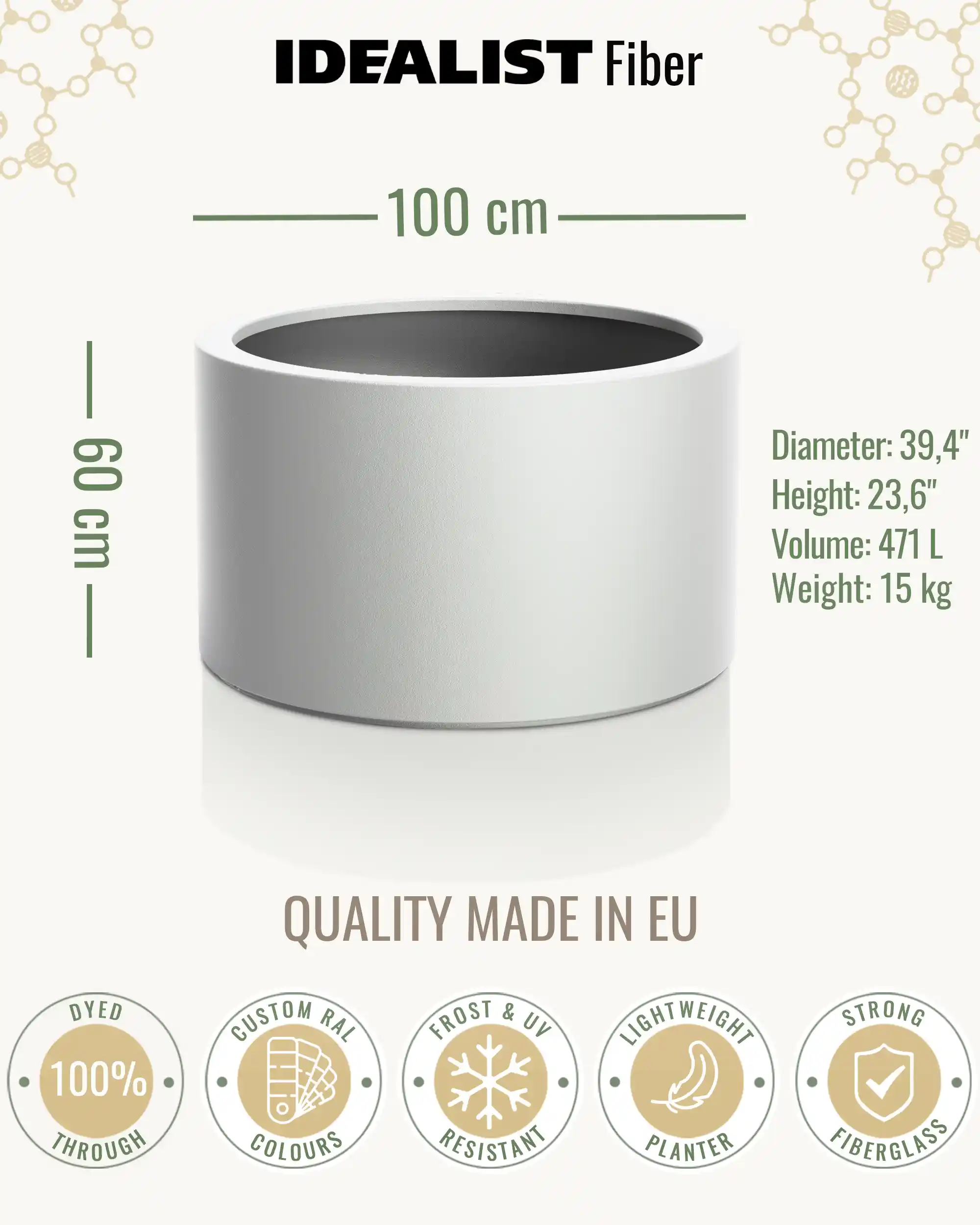 RING 100cm Large White Fibreglass Planter, Round Plant Pot for Outdoor Use D100 H60 cm, 471 ltrs Cap.
