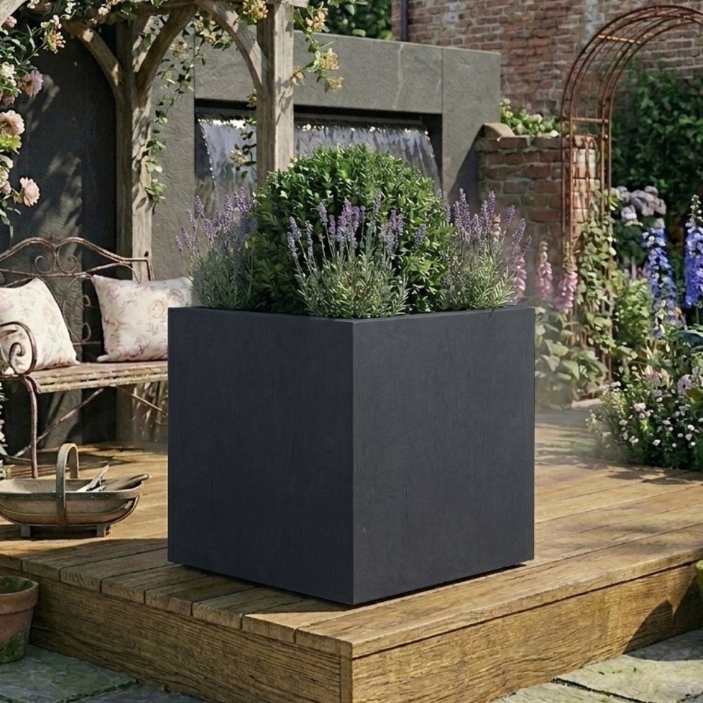 Patio Square Box Faux Lead Light Concrete Garden Planter H50 L50 W50 cm, 126 ltrs Cap.