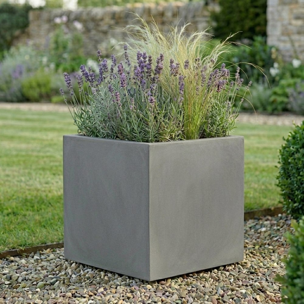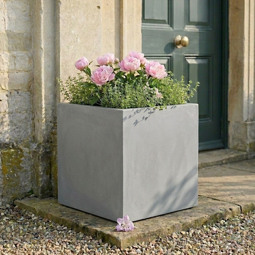 Patio Square Box Faux Lead Light Concrete Garden Planter H50 L50 W50 cm, 126 ltrs Cap.