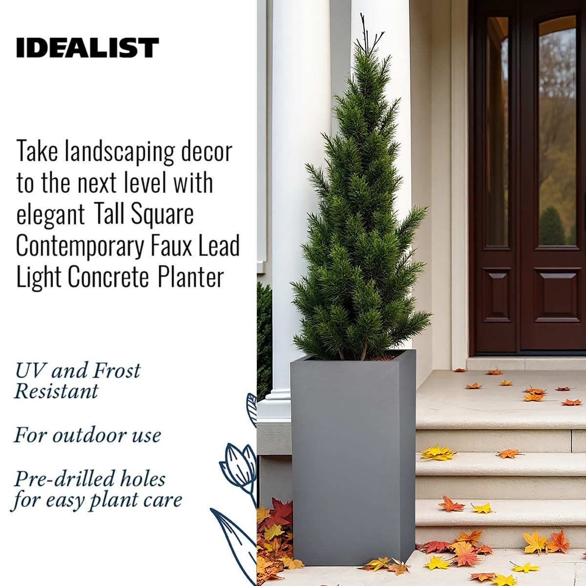 Tall Tapered Grey Light Concrete Garden Planter H65 L32 W32 cm, 67 ltrs Cap.
