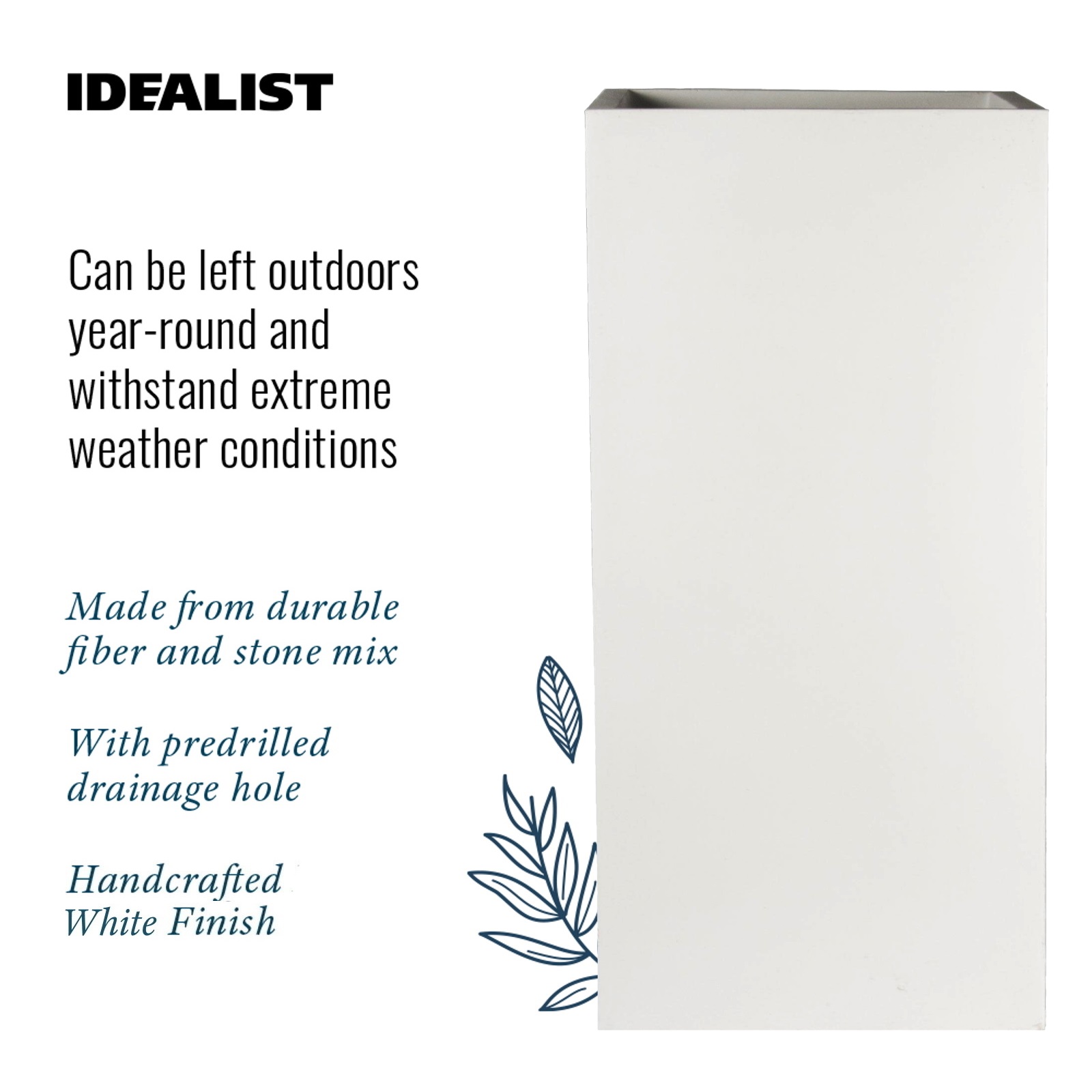 The use of high-quality materials and fibreglass makes the planters UV and Frost resistant, providing durability. Please be aware the units will weather over time naturally.