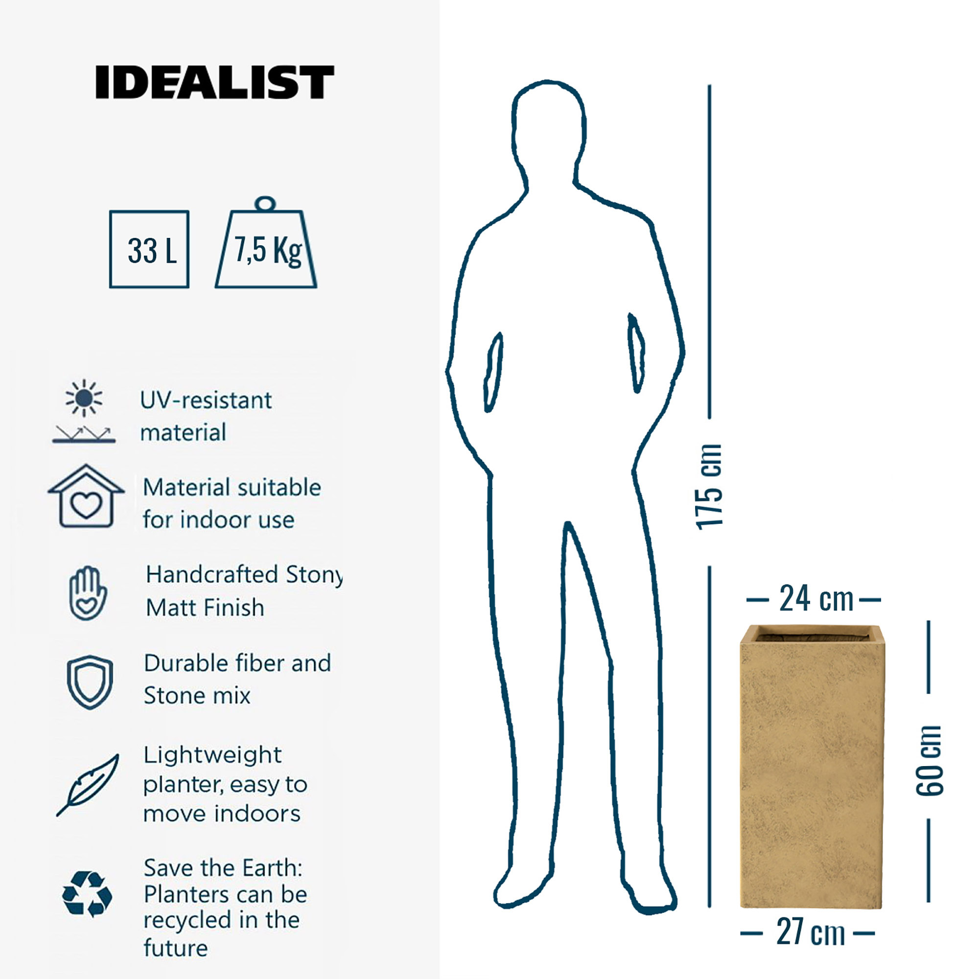 The planter’s surface is handcrafted so it can feature the slightest traces of handwork. This gives the planters a natural touch like a premium product made-to-measure by famous craftsmen.