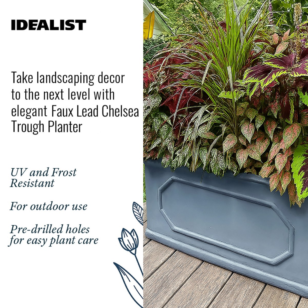 Faux Lead Concrete Trough Garden Planter H30 L60 W30 cm, 54 ltrs Cap.