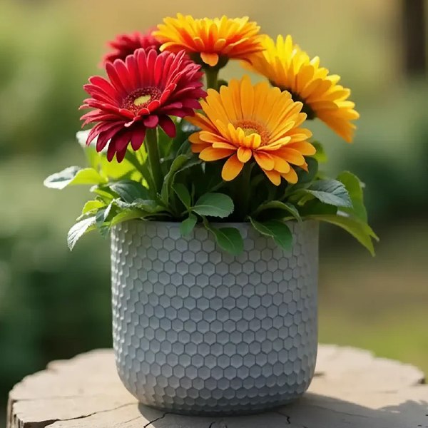 Out of stockOriginal price was: £50.30.£20.21Current price is: £20.21.Honeycomb Style Green Grey Cylinder Round Outdoor Garden Planter D19.5 H19 cm, 5 ltrs Cap.
